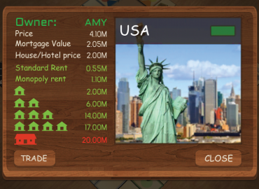 The aim of the game is to become a monopolist among all the players and to make as much money and property as you can. You will earn money each time your opponents land on your property. When you own all properties in one color group, you become a monopolist and you are allowed to build houses and hotels. The rent of the property with houses or hotels are much higher.